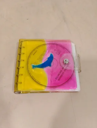 Estojo porta CDs com capacidade para 24 discos. ✔️ Estrutura resistente (tipo livro – flexível) ✔️ Argolas metálicas para abrir e fechar, permitindo adicionar ou remover folhas ✔️ Bolsas protetoras individuais para cada CD ✔️ Em bom estado, sem rasgões ou danos Ideal para guardar ou transportar CDs.