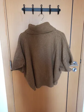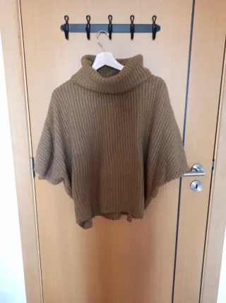 Poncho em malha com gola alta, perfeito para um look aconchegante. - Textura em relevo. - Mangas curtas e amplas. - Caimento solto.