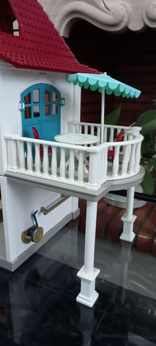 Conjunto da Schleich Fazenda Equina do Lakeside Club. Inclui a casa principal e um estábulo. Artigo comprado por 230€ para a minha filha, montado uma única vez desmontado de seguida e guardado. Casa Principal: 63 cms Largura X 45 cms Altura, Estábulo: 38 cms Largura X 28 cms Altura - Casa principal com telhado vermelho e janelas azuis. - Estábulo com telhado vermelho e portas azuis. - Figuras de pessoas incluídas.