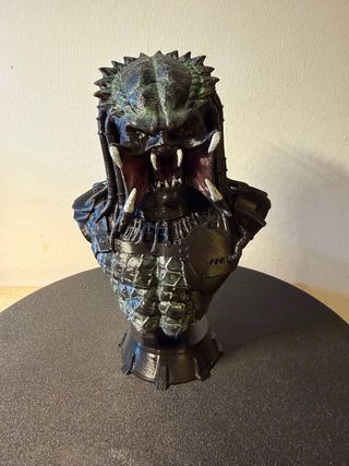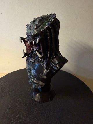 Predator printed and hand-painted, finished with an acrylic varnish for increased durability and an organic-looking effect. The paintwork was done manually, with close attention to biomechanical details, shadow contrast, An ideal piece for movie fans, sci-fi enthusiasts, and collectors. 🔹 Material: PLA 🔹 Finish: Hand-painted + acrylic spray 🔹 Condition: Very good