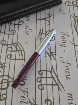 Vendo caneta de tinta permanente Sheaffer, modelo 440 (Linha Imperial). Aparo: O icónico Aparo Embutido (Inlaid Nib) em Aço. Tamanho M (Médio). Acabamento: Corpo em resina Bordeaux (Burgundy) e tampa em Aço Escovado. Estado: muito bom, sem marcas de uso. Com conversor e caixa originais Sheaffer. Envio rápido e protegido. #sheaffer #sheaffer440 #imperial #inlaidnib #vintage #fountainpen #bordeaux #nos #madeinusa #escrita #caneta #pluma