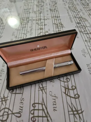 Vendo caneta de tinta permanente Sheaffer, modelo Targa (Ref. 1000). Modelo: Targa 1000 (Bright Chrome). Acabamento: Corpo e tampa em Metal Cromado de alto brilho. Aparo: O icónico Aparo Embutido (Inlaid Nib) em Aço Inoxidável. Tamanho M (Médio). Estado: muito Ombros, sem marcas de iso. Mantém autocolante com modelo. Inclui conversor original Sheaffer e caixa original. Envio rápido e protegido. #sheaffer #targa #targa1000 #chrome #vintage #nos #inlaidnib #fountainpen #caneta #caneta #pluma