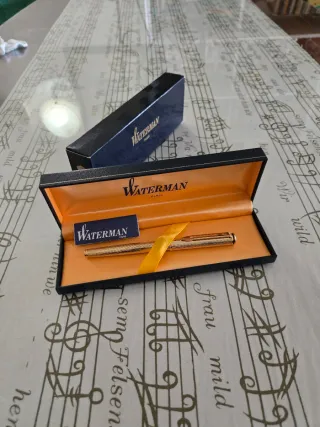 Vendo caneta de tinta permanente Waterman, modelo Master. Acabamento: Metal Cromado com textura "Fluted" (canelado vertical) e detalhes banhados a ouro. Aparo: Aço, tamanho F ouM (não identificado). Sistema: Cartucho ou Conversor. Inclui o conversor original da Waterman. Estado: como nova, sem marcas de uso. Inclui caixa original Waterman. Envio rápido e protegido. #waterman #master #vintage #fountainpen #tinta_permanente #nos #chrome #fluted #angulada #caneta #colecao #pluma