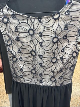 Vestido com um lindo padrão floral. - Parte superior em tecido com padrão floral. - Parte inferior em tecido liso. - Mangas curtas. - Nunca usado
