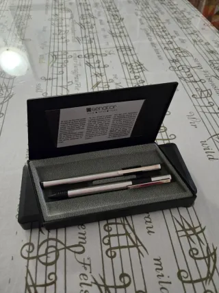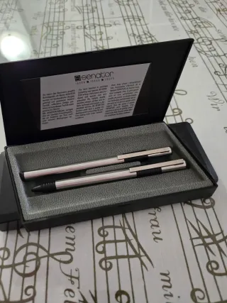 Vendo conjunto de escrita da marca alemã Senator. Design industrial robusto dos anos 80/90. Inclui: Caneta de Tinta Permanente + Esferográfica. Material: Corpo em Aço Inoxidável Escovado. Aparo: Aço "Iridium Germany", escrita M. Estado: como novo, sem marcas de uso, na caixa original. O conjunto ideal para uso diário intenso: robusto, alemão e intemporal. Envio rápido e bem protegido. Tags: #senator #acos #stainless #vintage #escritorio #caneta #alemanha #fountainpen #pluma