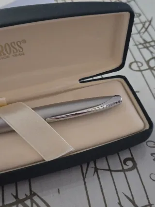 Vendo esferográfica da marca americana Cross, modelo ATX. Design contemporâneo e ergonómico, mais encorpado que os modelos clássicos para maior conforto de escrita. Acabamento: Cinzento Mate (Satin/Matte Chrome) com clipe polido. Mecanismo: Rotativo (Twist). Tinta: Azul. Estado: nova. Com caixa original. Envio rápido e protegido Tags: #cross #atx #ballpoint #esferografica #escritorio #caneta #design