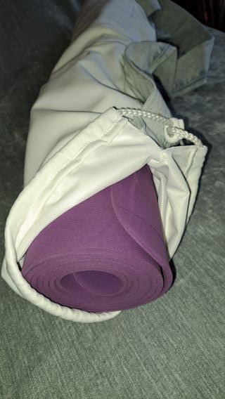 Vendo saco para transporte de tapete de yoga, feito totalmente à mão através do reaproveitamento criativo de tecidos. Sustentável: Criado com foco na redução de desperdício têxtil. Design: Estilo minimalista com detalhes em ganga na base e na alça. Praticidade: Inclui alça de ombro resistente e fecho ajustável com cordão e mola de segurança. Estado: Novo, nunca usado após a confeção. Dimensões: 67x15 Ideal para tapetes de tamanho padrão (ver fotos com o tapete roxo para referência de escala). Nota: Por ser uma peça artesanal feita de materiais reaproveitados, possui acabamentos rústicos que lhe conferem um caráter único.