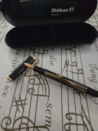 Vendo caneta de tinta permanente Pelikan Souverän M400. Exemplar "Old Style", fabricado na antiga Alemanha Ocidental (W.-Germany). Acabamento: Green Striated (Verde). Datação: Pré-1990 (Anel gravado "PELIKAN W.-GERMANY"). Aparo: Ouro Maciço 14k (585). Escrita M. Estado: muito bom, sem marcas de uso. Com caixa original Pelikan da época. Envio rápido e protegido. #pelikan #m400 #souveran #wgermany #vintage #goldnib #fountainpen #caneta #pluma