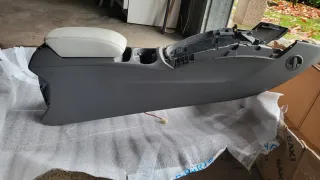 Consola central para Audi Q5. Pieza de plástico gris con reposabrazos acolchado en color blanco. - Reposabrazos acolchado. - Compartimento para bebidas.