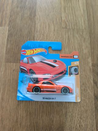 Miniatura do icónico Mazda RX-7 de 1995 da Hot Wheels. - Cor laranja vibrante. - Detalhes de corrida com o número 7. - Parte da coleção HW Turbo.
