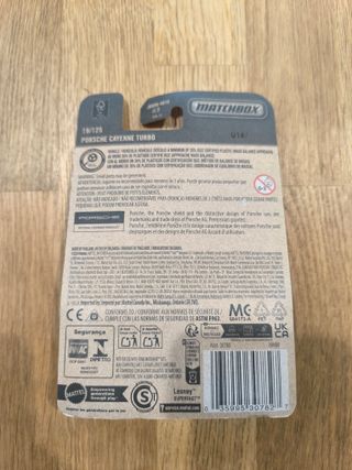 Miniatura do Porsche Cayenne Turbo da Matchbox. - Carroceria em metal. - Cor roxa. - Detalhes em preto e prata.