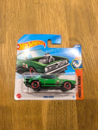 Miniatura do carro Hot Wheels King Kuda da coleção Muscle Mania. - Cor verde com detalhes em preto e vermelho. - Escala 1:64. - Embalagem original.