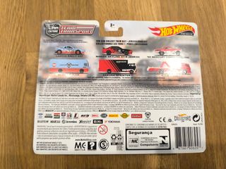 Coleção Hot Wheels Team Transport com o modelo BMW M3 E46. - Inclui caminhão e carro. - Tema Eibach Racing. - Modelo Aero Lift.