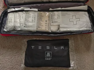 Kit de emergência novo. Inclui triângulo, colete, tesoura e várias bandas. Nunca usado.