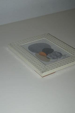 Moldura para fotos com um design texturizado e elegante. Perfeita para exibir as suas memórias. - Cor bege com detalhes em cinza. - Inclui passe-partout.