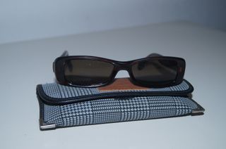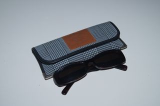 Estes óculos de senhora vêm com uma capa. - Capa com padrão xadrez. - Detalhe em pele na capa.