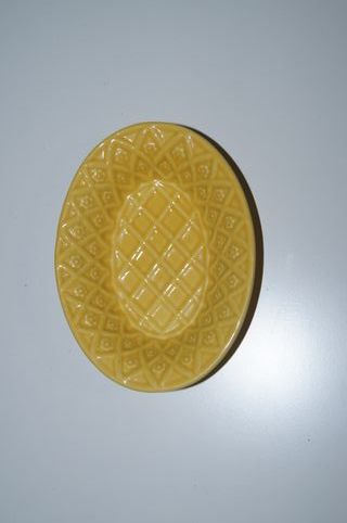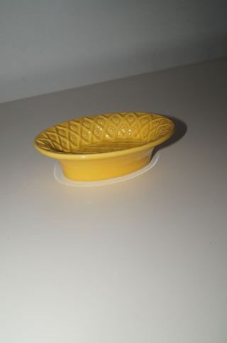 Saboneteira em cerâmica com um design texturizado. - Padrão em losango com detalhes florais. - Cor amarela vibrante.