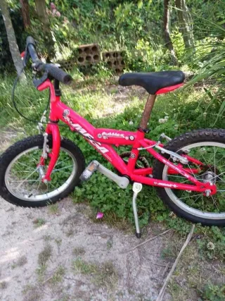 Bicicleta infantil da marca Vega, modelo Bubbles. Vendo bicicleta infantil Vega Bubbles com rodas de 16 polegadas, ideal para crianças dos 4 aos 6 anos (altura 105 a 120 cm). Está em bom estado, com travões funcionais, pneus com boa borracha e descanso lateral. Tem sinais normais de uso, mas está pronta a andar. Ideal para passeios e aprender a pedalar. Preço: 35 € Preço negociável !!