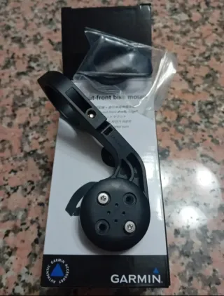 Suporte de guidão para ciclocomputadores Garmin. - Compatível com diversos modelos Garmin Edge. - Inclui suporte, anel de borracha e chave Allen. - Design em preto.