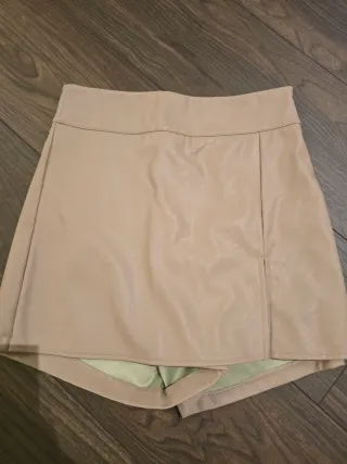 Saia calção em pele sintética. - Material: Pele sintética. - Cor: Bege.