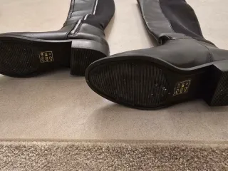 Botas elegantes de cano alto, que chegam até acima do joelho. Perfeitas para complementar qualquer visual. - Material em camurça. - Salto bloco robusto. - Design moderno.