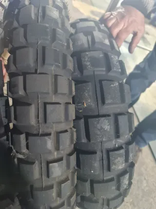 Conjunto de pneus Continental em bom estado. Circularam apenas 100km 140/80 -17 M/C 110/80 B19 M/C - Pneus de borracha. - Padrão de piso robusto.