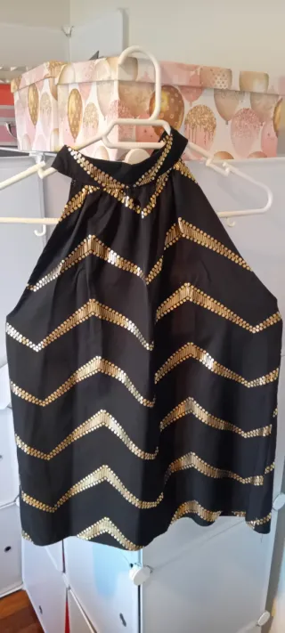 Top preto com detalhes dourados
