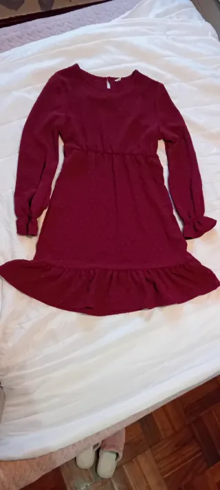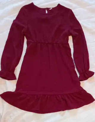 Vestido Vermelho Escuro Manga Longa Tamanho 14anos