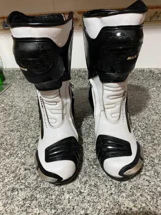 Botas de mota de estilo desportivo, ideais para a estrada. - Cor branca e preta. - Fecho de velcro. - Proteções integradas. - Como novas - Tamanho 43