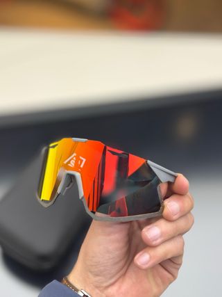 Óculos desportivos com design moderno, ideais para corrida e ciclismo. Inclui três lentes intercambiáveis para diferentes condições de luz. - Lentes com proteção UV. - Armação leve e resistente. - Design aerodinâmico. - Importados nao genuíno - Novos nunca usados - Sem riscos ou marcas de uso