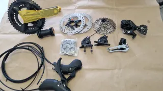 Vendo grupo transmissão novo, retirado de uma bicicleta nova: Madone gen8,tamanho M/L Componentes: - Manípulo de mudanças: Shimano 105 R7120, 12 velocidades - Desviador dianteiro: Shimano 105 R7100, braze on, - Desviador traseiro: Shimano 105 R7100, - Pedaleiro: Shimano 105 R7100, 50/34, comprimento de 170 mm - Eixo pedaleiro: Praxis, roscado T47, - Cassete: Shimano 105 7101, 11-34, 12 velocidades - Corrente: Shimano SLX M7100, - Disco de travão: Shimano CL700, Centerlock, 160 mm NOTA: Apenas vendo o grupo completo