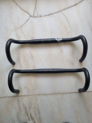 Dois guiadores de alumínio para gravel e estrada em excelente estado. - Marca: Elite VRC 7050 ALU - Largura: 42cm - Alcance: 81mm - Drop: 124mm - Diâmetro: 31.8mm - Inclui 2 unidades.