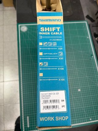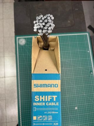 Conjunto de 10 cabos de câmbio internos Shimano. - Diâmetro: 1.2mm - Comprimento: 2100mm - Quantidade: 10 unidades - Revestimento em polímero Vendo a caixa completa com 80 unidades por 96€. Outro anúncio no perfil. Não negociável.