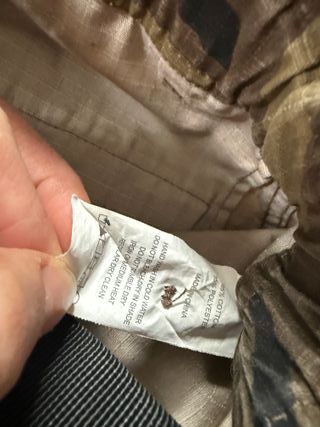 Calças com padrão camuflado, ideais para um estilo casual. - Composição: 65% algodão, 35% poliéster. - Instruções de lavagem: Lavar à mão em água fria. - Não usar lixívia. - Secar à sombra. - Não usar máquina de secar. - Passar a ferro com temperatura média. - Limpeza a seco regular.