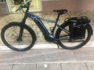 Bicicleta tamanho M, trasmissão Shimano Alivio 9v, travões hidráulicas Sram Guide, suspensão RockShox Recon 120 mm curso. Bicicleta em bom estado, riscado na zona da bateria. Vendo com pedais, borda-lamas e 1 alforge novo nunca usado