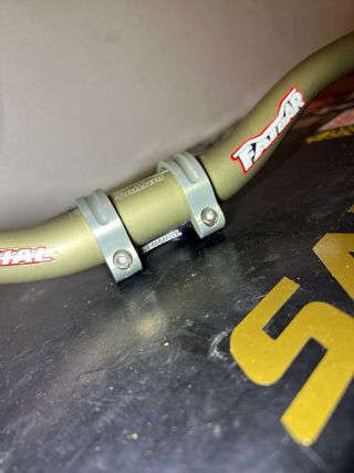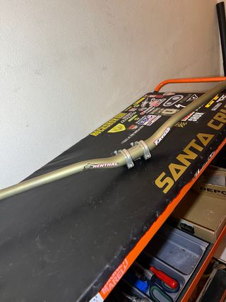 Conjunto de guiador e avanço da marca RENTHAL. - Guiador RENTHAL 31.8 com 800mm de comprimento - Avanço RENTHAL 31.8