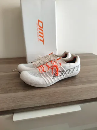Sapatilhas de ciclismo DMT POGI'S 2025 último modelo. Tamanho: 40,5- 25,9cm - Material superior em malha respirável. - Sistema de fecho com atacadores. - Sola exterior robusta. Modelo usado por Tadej Pogačar Tem uma pequena costura no sapato direito
