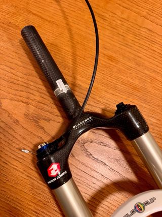 Rock shox Reba WorldCup Blackbox Carbon crown-steerer (18cm long) 100mm travel 26” wheels , 9mm axle Disc brake only vintage retro mtb mountainbike btt sid fox Shimano XTR Spinergy Klein yeti kooka specialized syncros