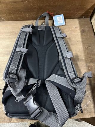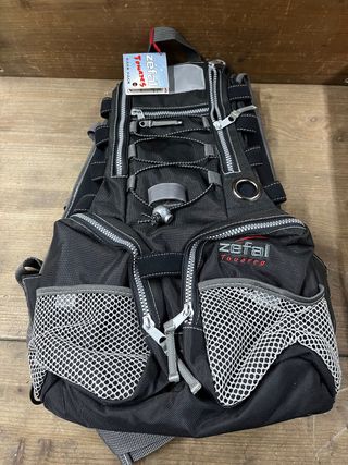 Mochila Zefal Dakar em preto e cinza, com detalhes refletivos. - Compartimento principal com fecho de zíper. - Bolsos laterais em rede. - Alças ajustáveis.