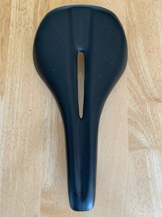 Selim de alta performance com carris e base em fibra de carbono. Peso de 120 gramas. Design ergonómico com abertura central para alívio de pressão. Acabamento premium "Ultimate" em preto mate. Muito leve, ideal para reduzir o peso da bicicleta.