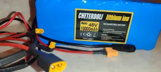 Kit completo e novo para aumentar a autonomia da sua trotinete elétrica (compatível com modelos de 48V). Bateria: Li-ion 48V 10000mAh de alta performance da marca Cheterdoli. Bolsa de Transporte: Estojo rígido à prova de água com sistema de fixação por velcro para o guiador/coluna. Conectores: Inclui cablagem com fichas XT60 para uma ligação segura e estável. Ideal para: Quem precisa de fazer mais quilómetros por dia sem ter de carregar a trotinete a meio do caminho.
