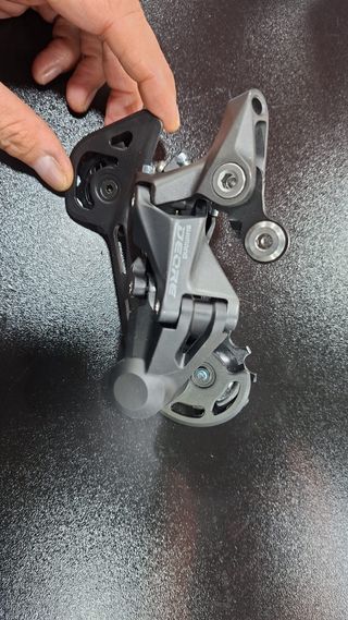 Câmbio traseiro Shimano Deore para bicicletas. - Compatível com 10 e 11 velocidades. - Cor cinza grafite.