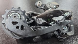 Caixa de desviador longa SRAM X7 para 10 velocidades. Peça nova. - Material: Carbono e metal. - Design leve e resistente. - Compatível com sistemas de 10 velocidades.