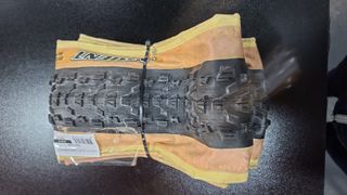 Pneu de bicicleta MAXXIS Ardent para MTB, com medida 29x2.25. Novo - Cor: Preto com laterais castanhas. - Ideal para uso em trilhos e terrenos variados.