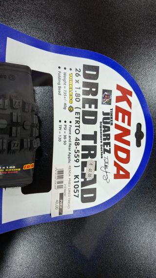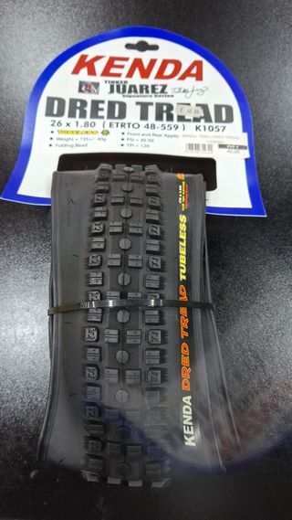 Pneu Kenda Dred Tread para bicicleta, tamanho 26x1.80 Novo - Modelo: Dred Tread - Tamanho: 26 x 1.80 (ETRTO 48-559) - Tipo: Tubeless Ready (TLR) - Cor: Preto - Peso: 735 +/- 40g - Talão: Dobrável (Folding Bead) - PSI: 30-50 - TPI: 120