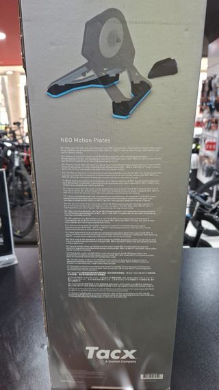 Dimensions: 582 mm x 122 mm x 102 mm (22.9" x 4.8" x 4.0") Added height to trainer: 25 mm (1") Range of motion: 50 mm (2") Tacx Neo Motion Plates Novos em caixa Weight: 1.55 kg (3.41 lbs) Compatible trainers: Neo, Neo 2, Neo 2T Front wheel support tire compatibility: Up to 28 mm
