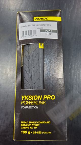 Pneu de estrada Mavic Yksion Pro Powerlink. - Tamanho: 700x23c - Peso: 190 g - Composto: Single Compound - Proteção: Breaker Nylon - Carcaça: 127 TPI