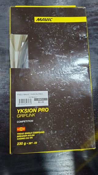Pneu de estrada Mavic Yksion Pro 16 Griplink 700X23C tubular para competição. - Composto de borracha Tread Single Compound. - Proteção Breaker Nylon. - Carcaça 210 TPI. - Peso: 230g. - Tamanho: 28-23.
