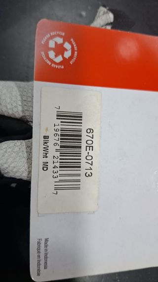 Specialized Par de Luvas SL Pro tamanho M C/defeito - Design sem dedos. - Detalhes em preto e branco com listras vermelhas. - Logo da marca visível. - Possui um defeito, conforme indicado na imagem.