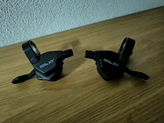 Shifters Shimano Deore XT M739. - 3x8 - Em bom estado de funcionamento - Faltam as tampas inferiores na zona do cabo